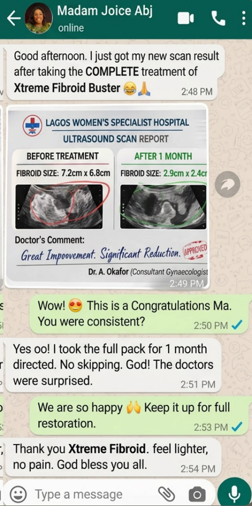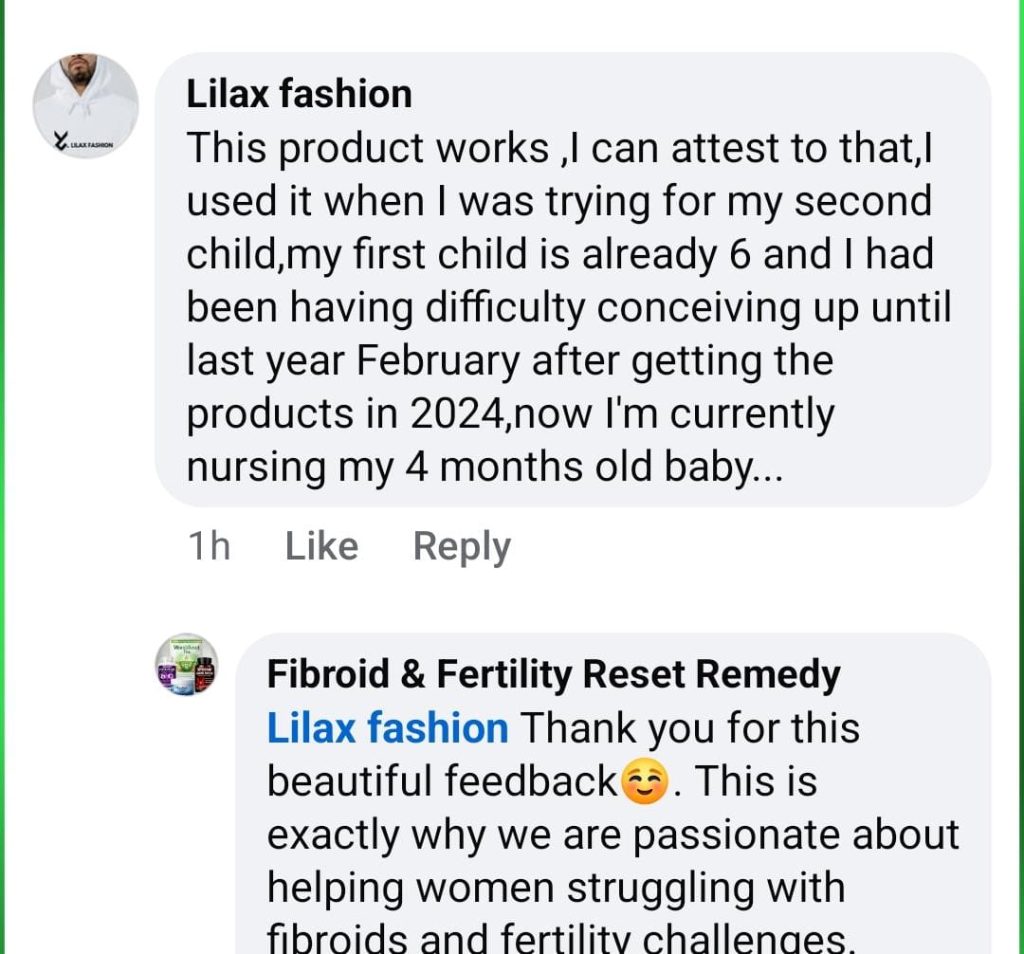 The heavy bleeding, the waist pain, the fear that I might never carry my own baby… it broke me quietly. Doctors mentioned surgery, but I was scared and tired of starting over. When I started the Complete Fibroid and Fertility Reset System — the capsule, the powder, the tea, and the balm — I didn’t expect everything to change overnight. I just prayed for relief. Gradually, my body began to feel different. My cycle became lighter. The constant pain reduced. And when I went for test the fibroid has disappeared completely Today, I’m holding my baby in my arms. I can’t explain the joy of finally becoming a mother after thinking it might never happen. If you’re battling fibroid and losing hope, please don’t give up. This system gave me my testimony.