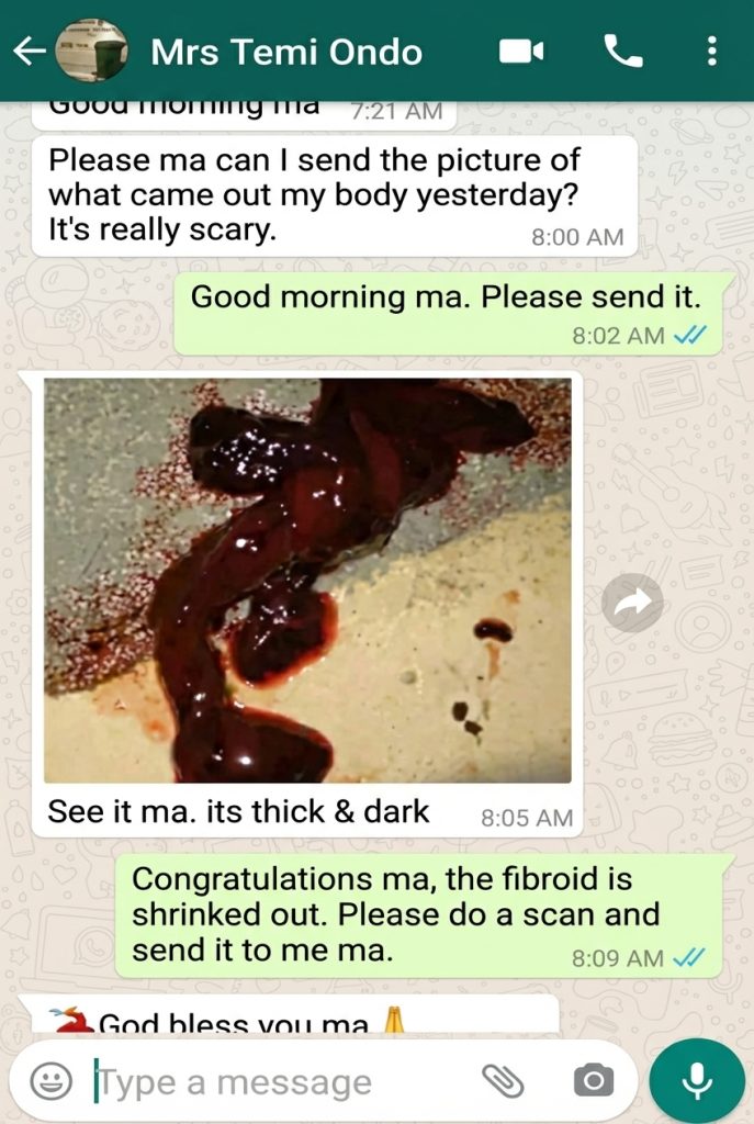 A lot of women have gotten this product are now free from fibroid. We have also sold this product to thousand of Nigerians and also many women in other African countries. A lot of them are calling back to say thank you. A lot of men are also buying for their wife.