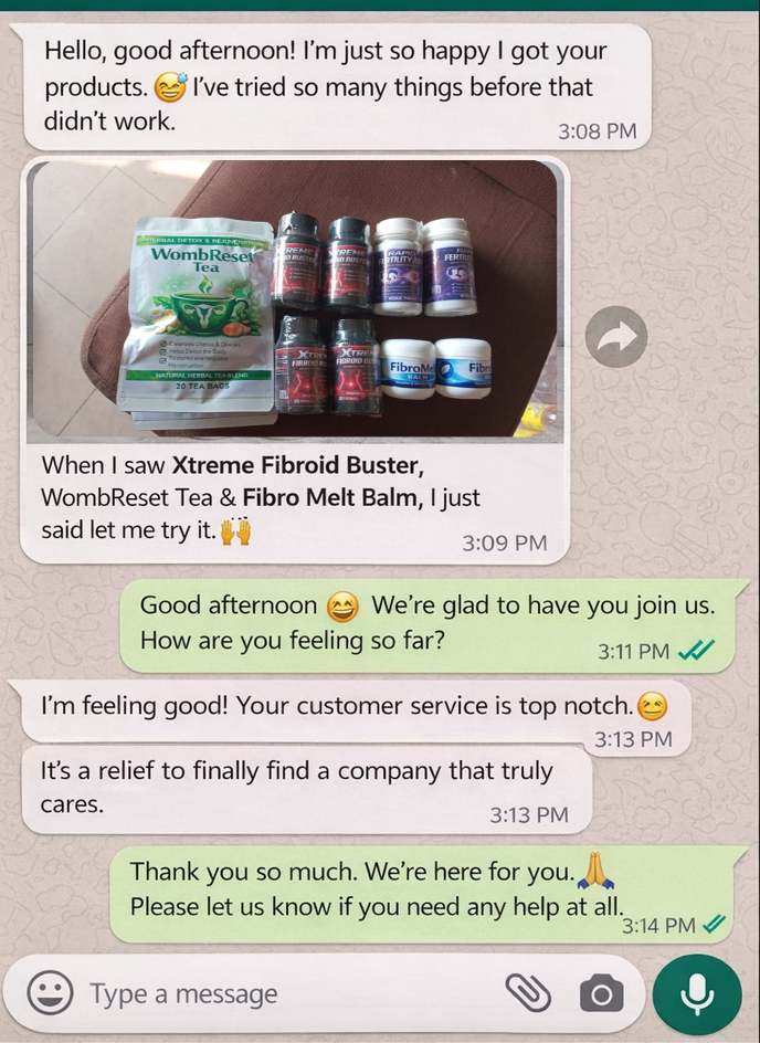 This is what completes the journey. We have so many customers here in nigeria and other african country that have dissolved there fibroid and conceived with this products. Some are even referring us to there family and friend which is why is good to sell working products.